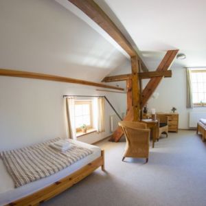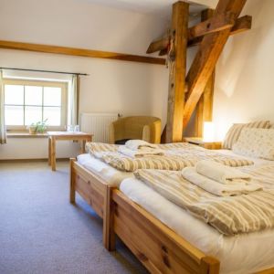 Ubytování Jižní Čechy v našem penzionu je velmi příjemné, také vzhledem k tomu, že styl budovy, zůstal i v interiéru pokojů zachován. V interiéru jsou zachovány původní trámy, které tvoří složitou střešní konstrukci mlýna, která v sobě nesla i několikapatrovou soustavu mlynářských strojů.