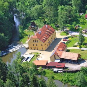 V roce 2006 byl kolaudován penzion a restaurace DOBRÉ ČASY. Nejmoderněji zařízená kuchyně a stylová restaurace s nabídkou, která uspokojí nejnáročnější milovníky zvěřiny, ryb a ostatních tradičních jídel. Stolovat můžete i na terase restaurace, přímo nad řekou, s výhledem na jez a skálu, na níž psal Karel Čapek svůj román Krakatit. Jistě si nevybral tento krásný kout Jindřichova Hradce náhodou.